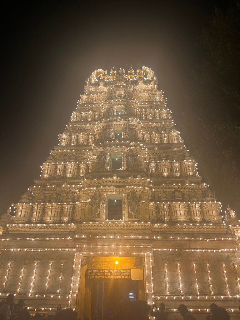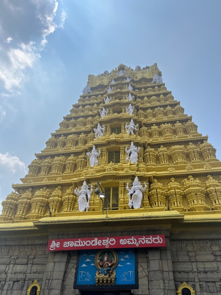 Our first stop was Chamundi Hills, where we were able to see the entire city of Mysore from part of the mountain. It was a very beautiful view. Even further atop the mountain, we were able to visit Sri Chamundeshwari Temple. This temple, being one of the most prominent temples in Mysore, was built and dedicated to Goddess Chamundi. She was a deity of the Mysore Royal Family.