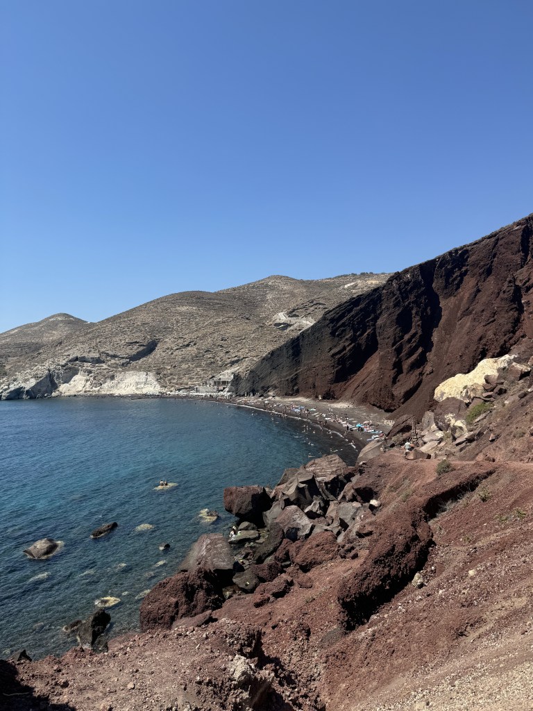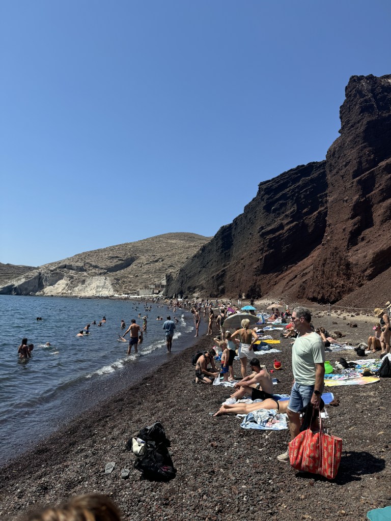 Santorini is quite a small island and you can get from one end to the other in just over an hour. We spent the entire day driving alongside the coast hopping from beach to beach and swimming in the ocean. The beaches were beautiful and the water was clear – we wished we had goggles to see more of the sea life.